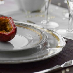 Cet art de la table raffiné et élégant séduit les connaisseurs avec ses ornements qui ne laissent personne indifférent. Un service parfait pour recevoir vos convives dans les règles de l’art car la vaisselle avec galons d'or apporte une touche précieuse à un évènement éblouissant !